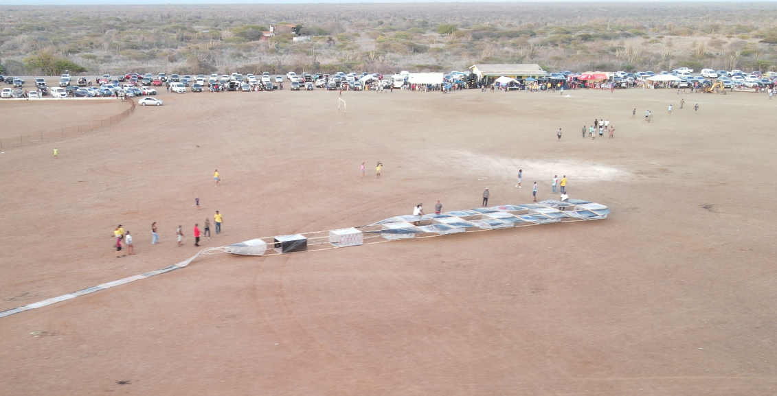 Intento ambisioso pa kibra rekòrt di fli mas grandi den islanan ABC no a logra awe durante e di 44 edishon di kontèst di fli. E fli di mas ku 50 meter di grandura, konstrukshon di Fly High Kite Team liderá pa Layo, lamentablemente no a logra subi den laira.